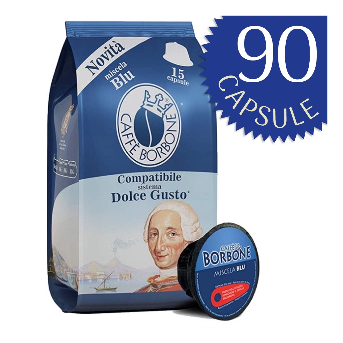 Capsule di Caffè macinato monodose Borbone compatibile con le macchine a sistema Dolce Gusto, miscela Blu, equilibrato e corposo, per un caffè dalla consistenza densa e cremosa. (90 capsule)