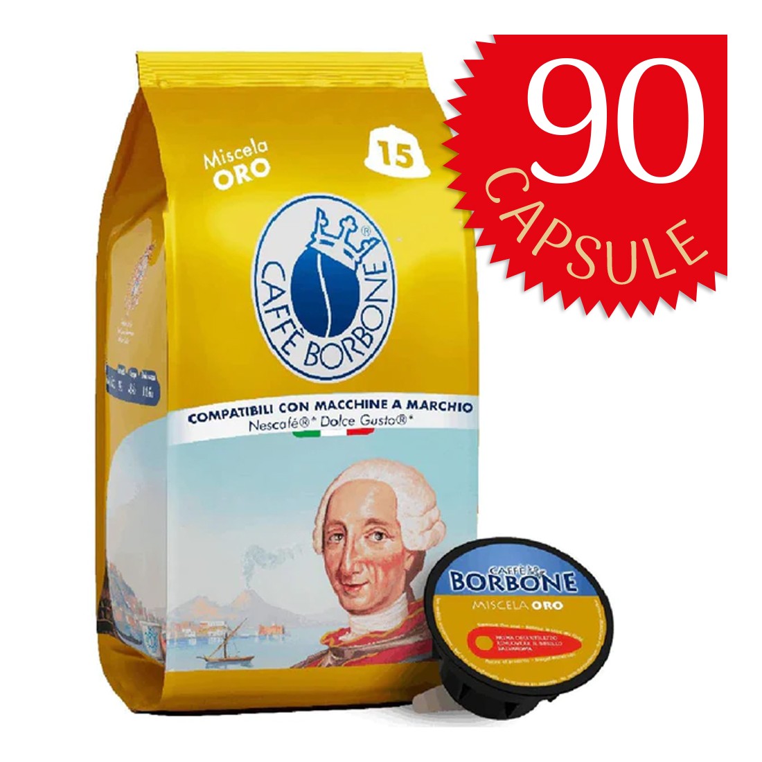 Capsule di Caffè macinato monodose Borbone compatibile con le macchine a sistema Dolce Gusto, miscela Oro, ispirata al classico, tradizionale espresso italiano, gusto denso e piacevole e la consistenza cremosa e soffice. (90 capsule)