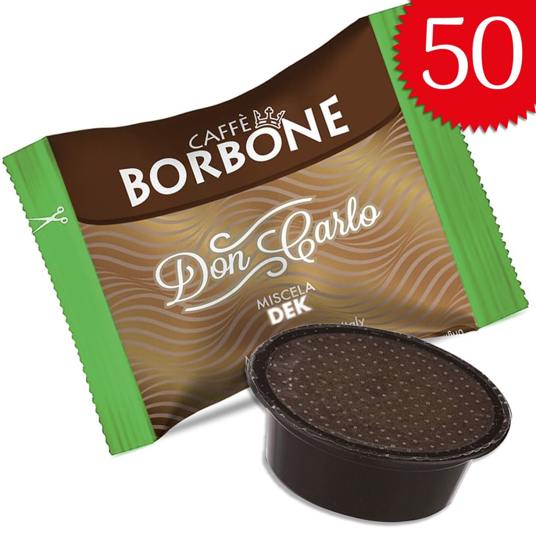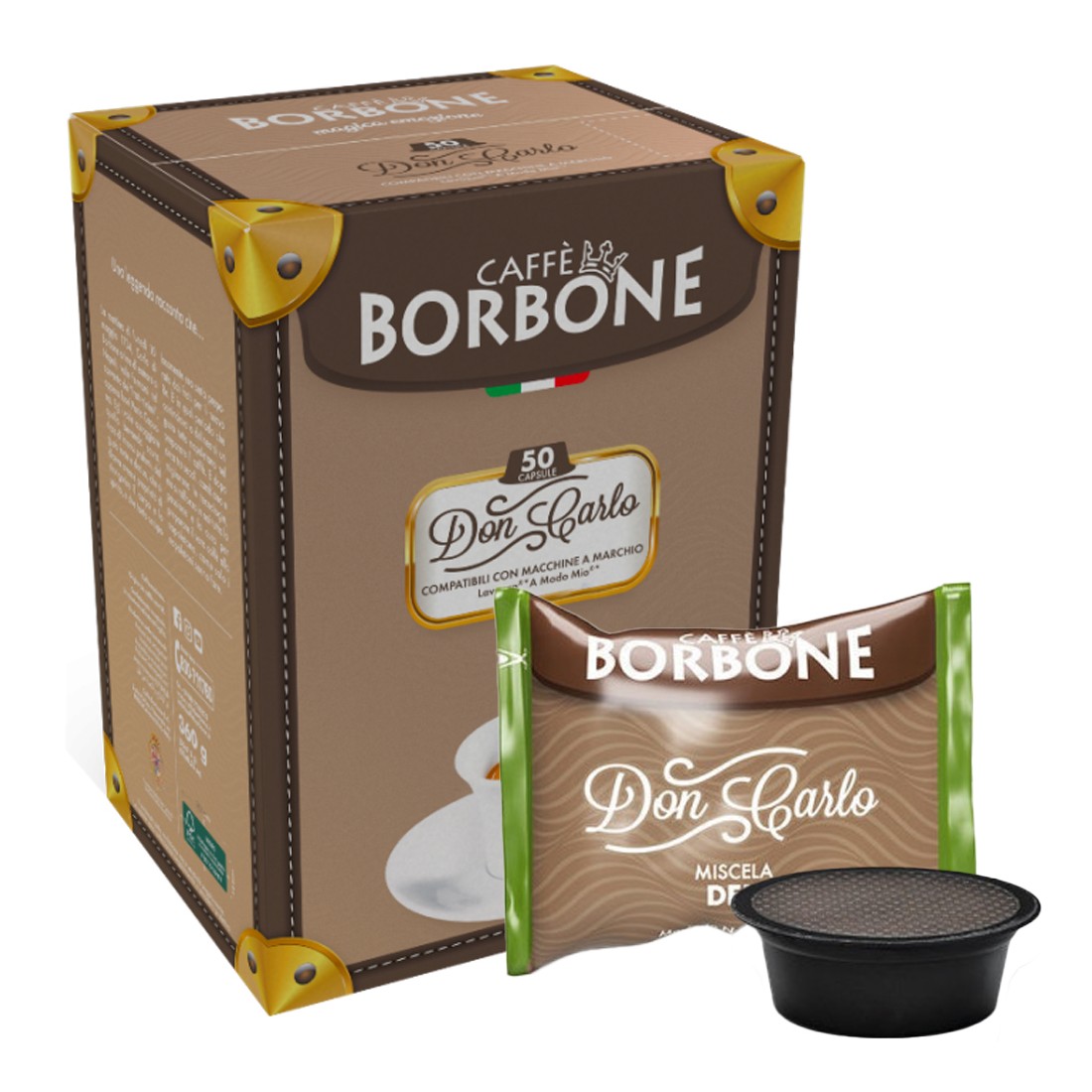 Capsule compatibili con sistema Lavazza® A Modo Mio® Caffè Borbone Don Carlo Miscela Decaffeinata, per un'esperienza caffè come quella del bar. Confezione da 50 capsule.