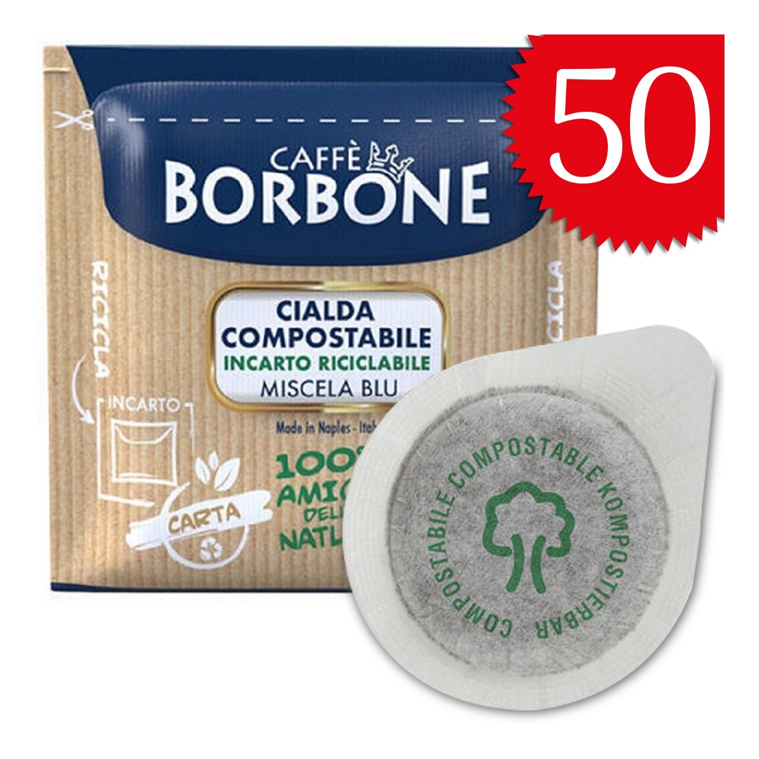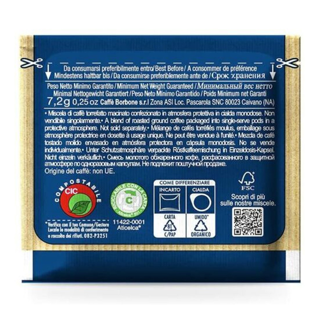 50 cialde Borbone miscela blu compostabili e riciclabili ESE 44mm, gusto equilibrato, aroma intenso e carattere vigoroso; il perfetto tra corpo, persistenza e dolcezza.