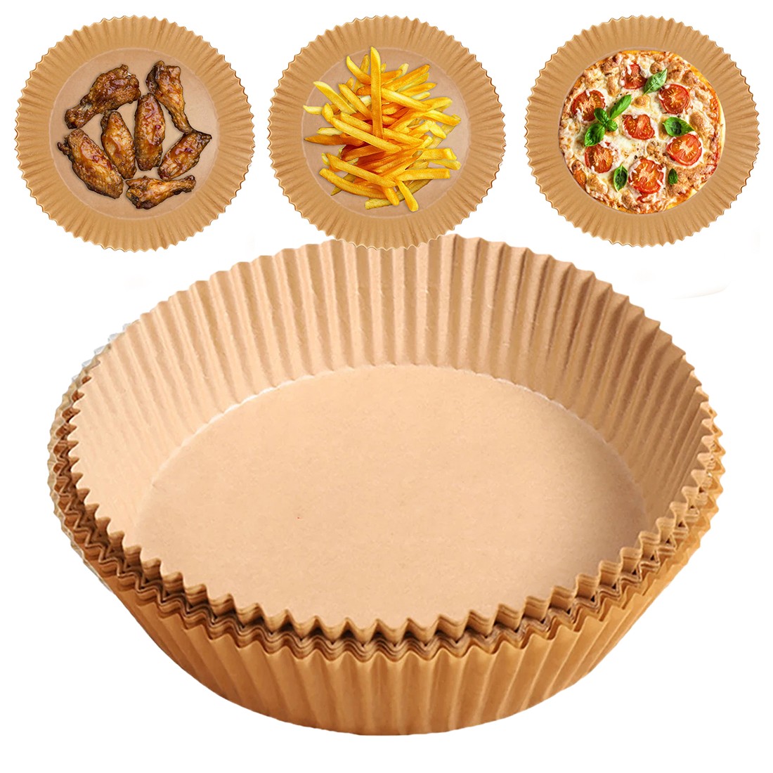 MovidaFogli di carta da forno monouso per friggitrice ad aria movida, 100% biodegradabili, marroni, rotondi, antiaderenti - diametro 20 cm, cotture uniformi, croccanti e con meno grassi