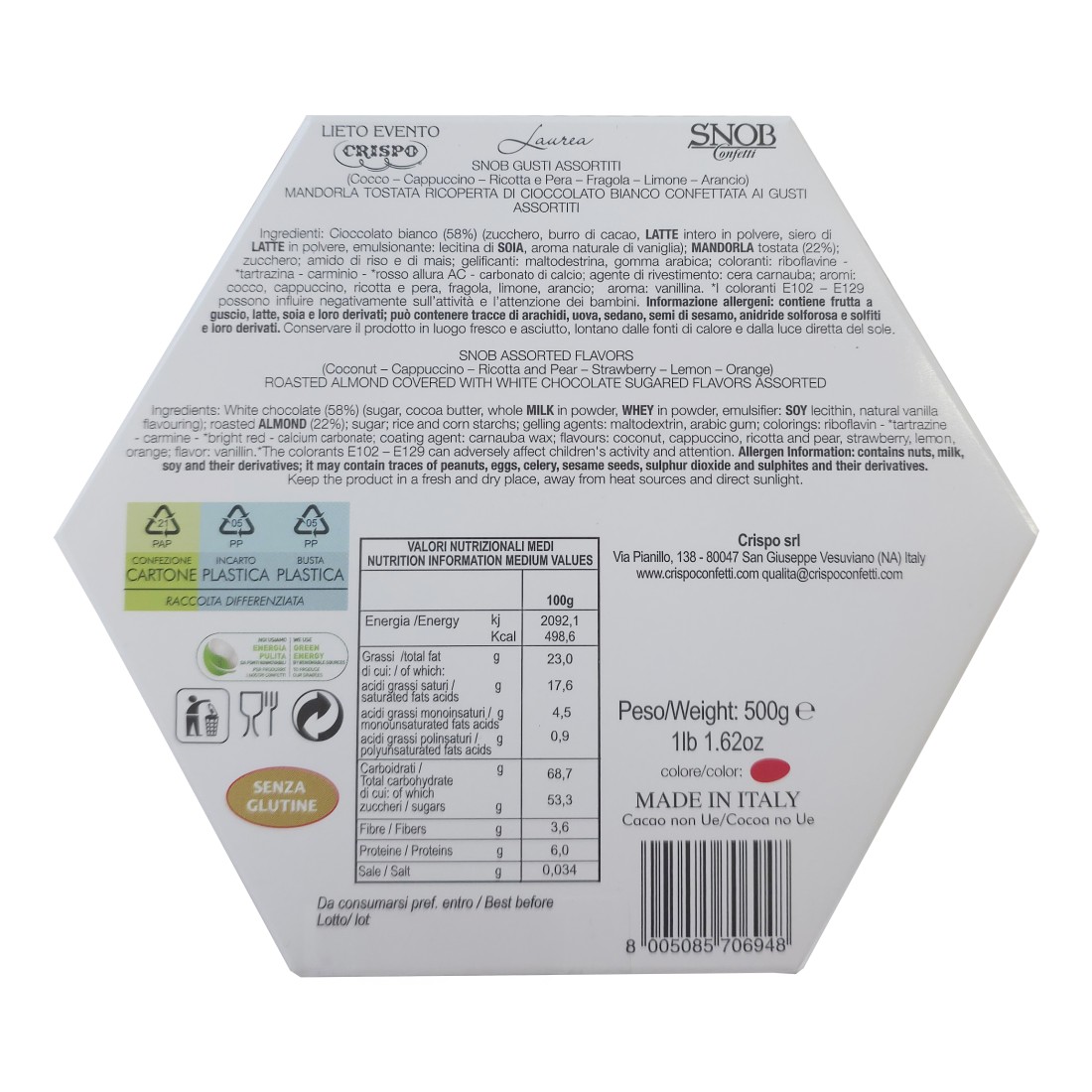 Se cerchi un'esperienza di gusto raffinata e unica per il tuo evento di Laurea, i confetti Snob Rossi Crispo sono la scelta giusta.