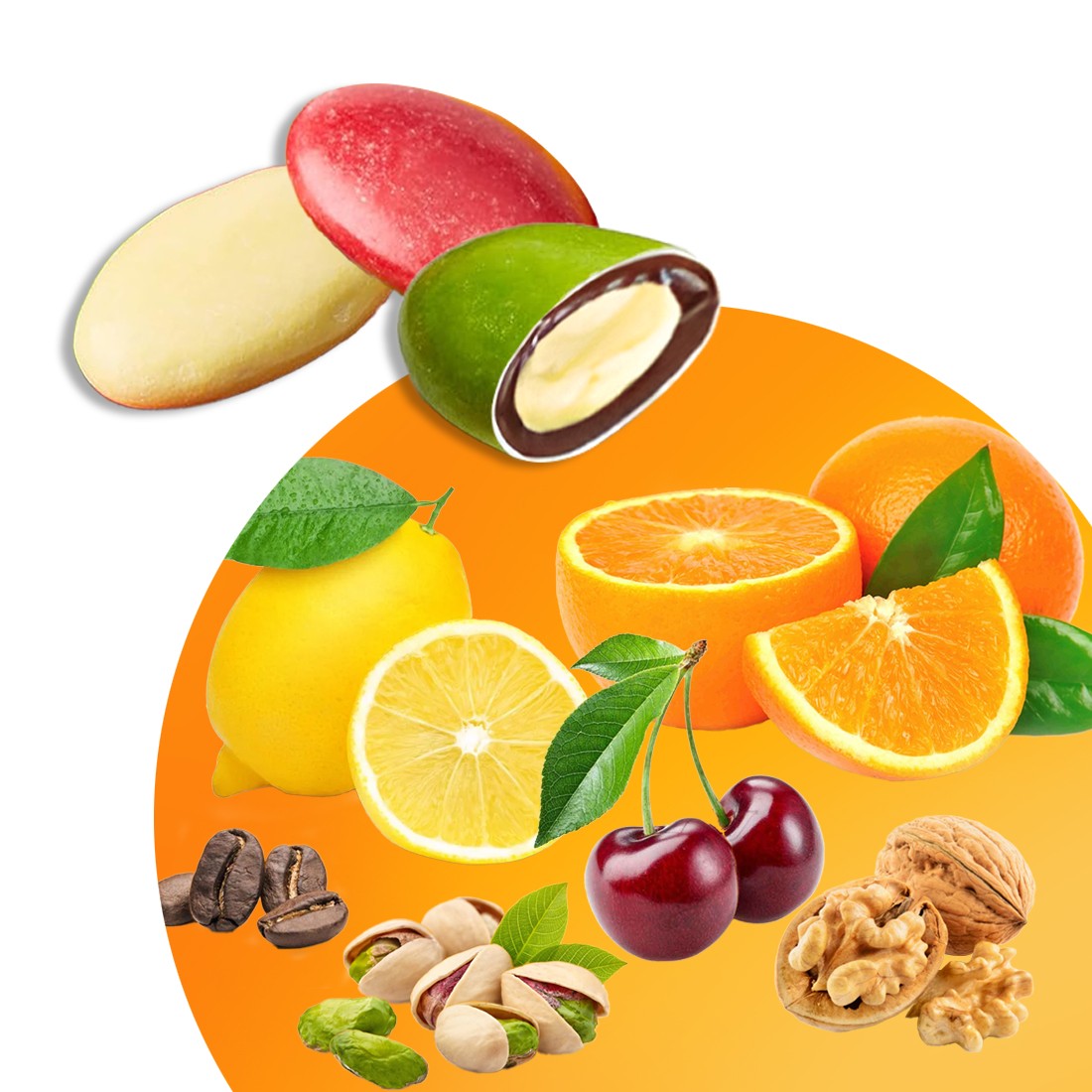 I confetti Crispo Cioco Passion assortiti offrono una varietà di gusti irresistibili: l'arancia fresca e vivace, la delizia al limone che aggiunge una nota agrumata, l'amarena dolce e succosa, il pistacchio ricco e cremoso, la ricotta e noci per un tocco tradizionale e sofisticato, e il caffè intenso e aromatico. Ogni confetto è un piccolo capolavoro di sapori, perfetto per ogni occasione speciale.