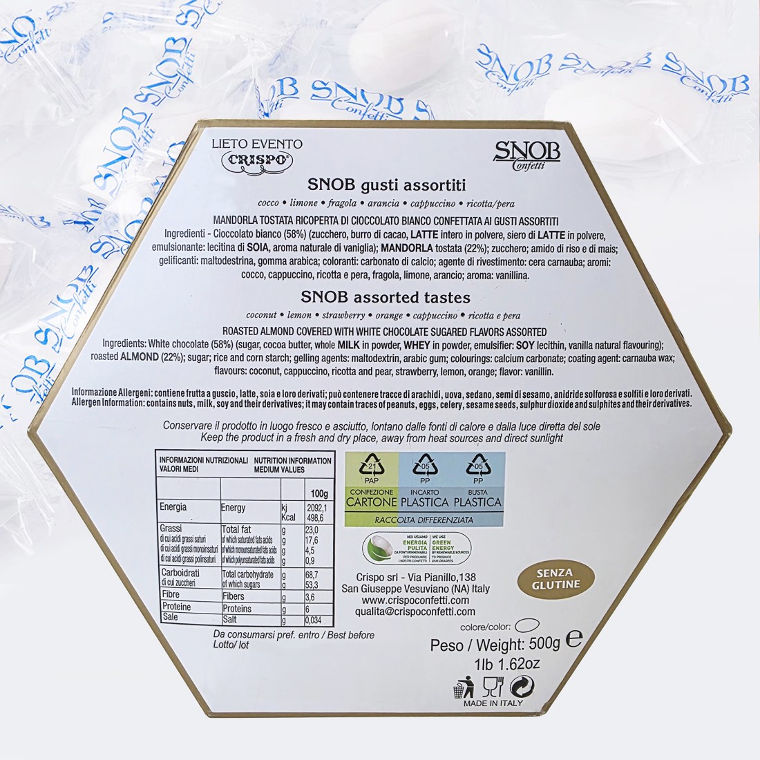 I confetti Snob Bianchi Crispo sono la dolce scelta per celebrare il dono più prezioso: una nuova unione.