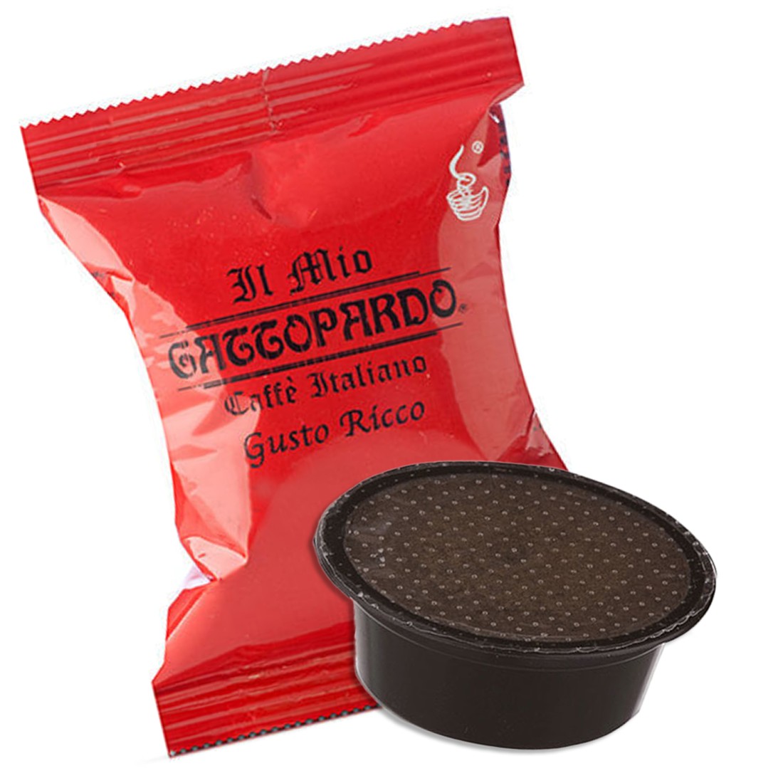 100 capsule di caffè Gattopardo miscela Ricco compatibili con Lavazza A Modo Mio, gusto deciso e dal timbro marcato, per il giusto bilanciamento fra sapore, fragranza e aroma.