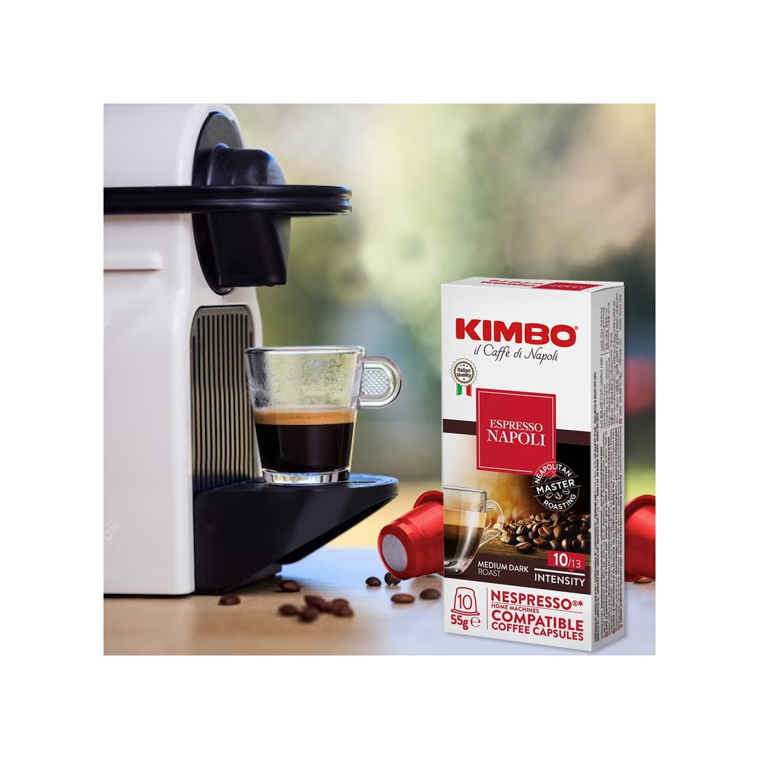 Le capsule Kimbo per Nespresso, con la loro miscela Napoli, rappresentano l'equilibrio perfetto tra passione e qualità nella preparazione di un espresso autentico direttamente a casa tua.
