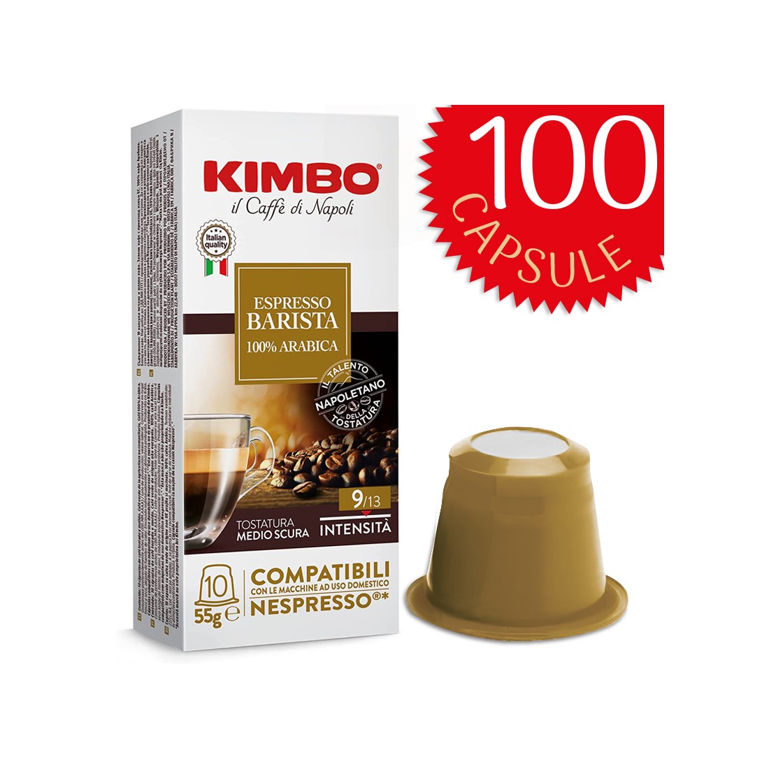 Porta l'atmosfera del tuo bar preferito direttamente a casa tua con le Capsule di Caffè Kimbo per Nespresso Miscela Barista.
