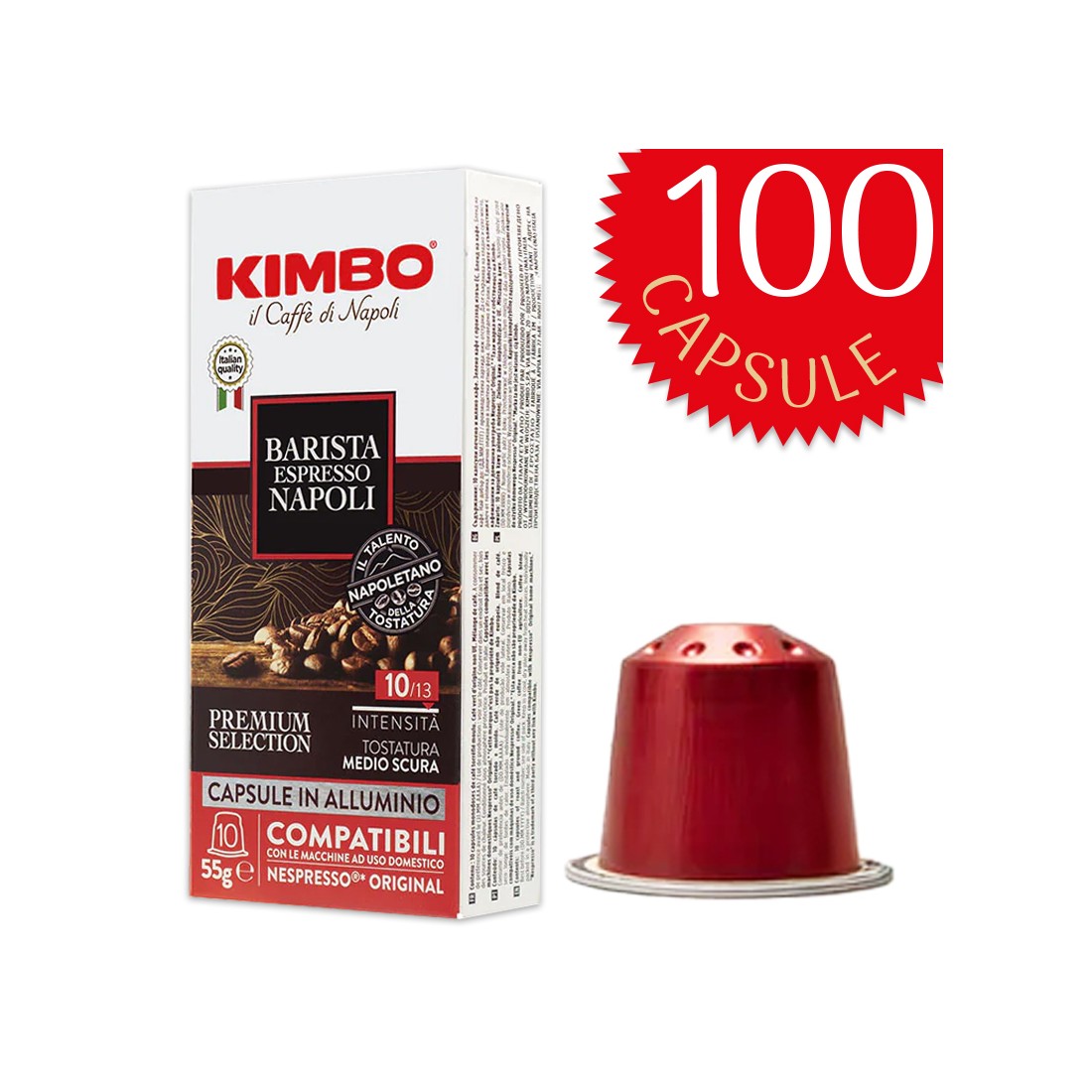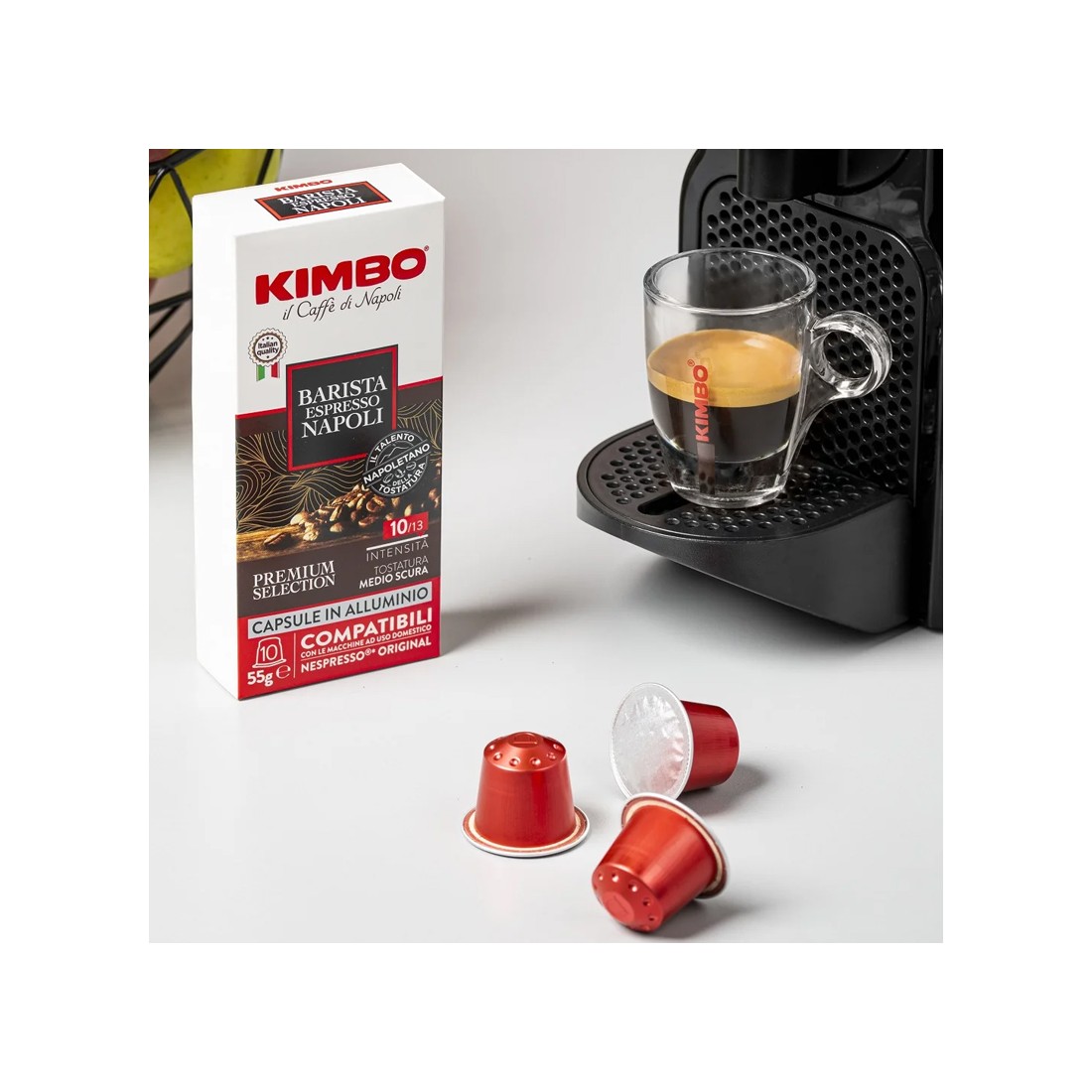 Vivi l’autentica tradizione napoletana con le capsule in alluminio Kimbo per Nespresso, l'equilibrio perfetto tra passione e qualità nella preparazione di un espresso.