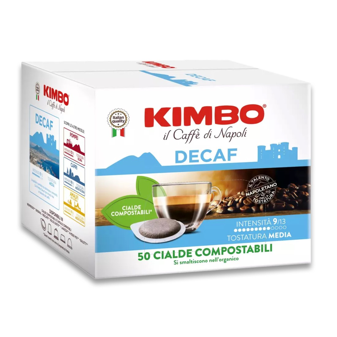 Con le cialde caffè decaffeinato, Kimbo ti regala un espresso dal gusto intenso, dall'aroma avvolgente e dalla crema perfetta, proprio come al bar.