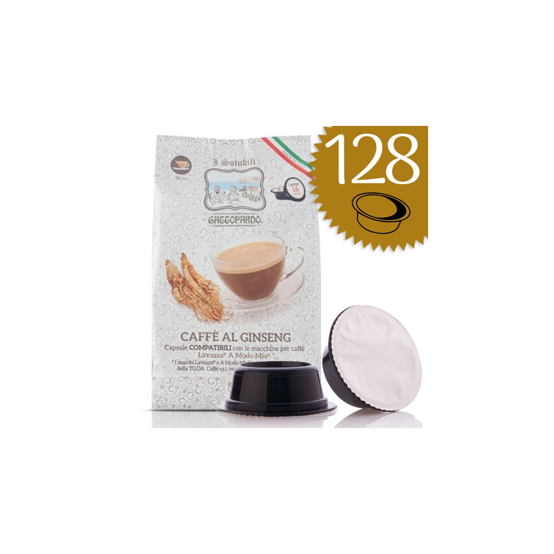 Capsule di caffè ginseng compatibili con Lavazza A Modo Mio Gattopardo, l'alternativa dolce al caffè espresso, ideale per una tazza da 160 cc (confezione da 128 capsule)