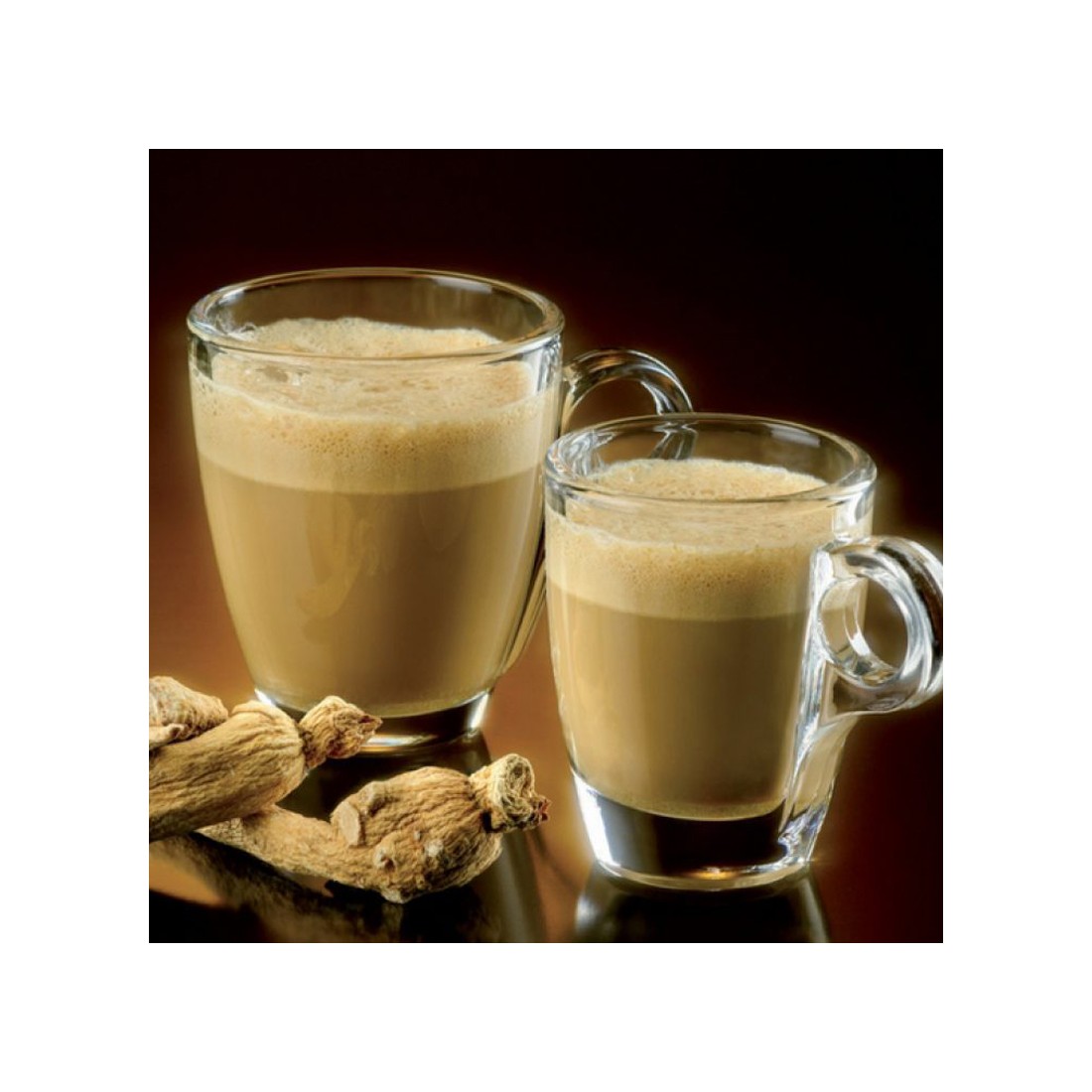 Un equilibrio di sapori che stimola i sensi e rinvigorisce il corpo. Tutto l'aroma avvolgente del caffè espresso, a cui il ginseng aggiunge un tocco di dolcezza.
