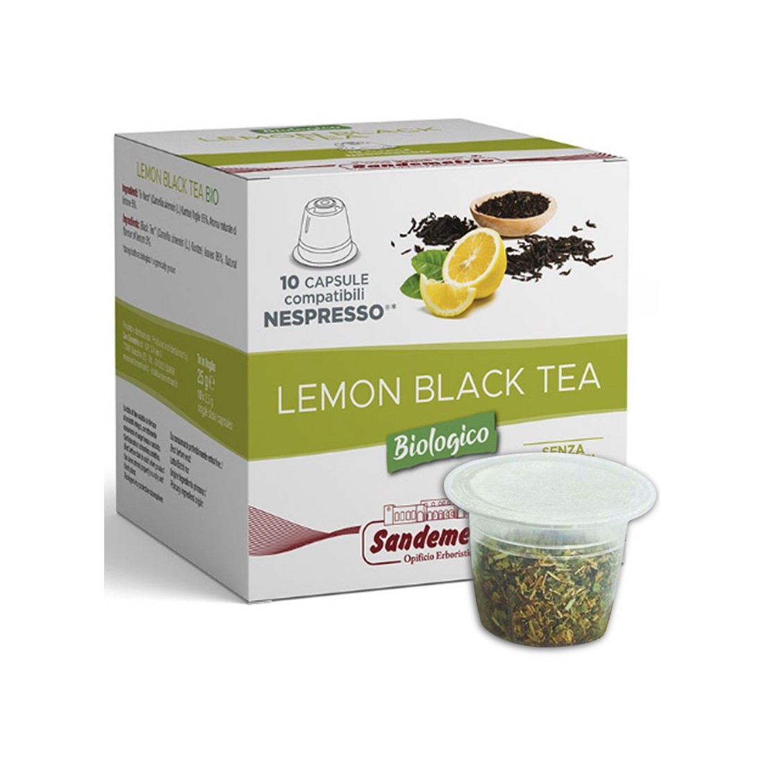 10 Capsule Tè al Limone compatibili per Nespresso Sandemetrio, Tè nero aromatizzato Biologico Monodose senza zucchero